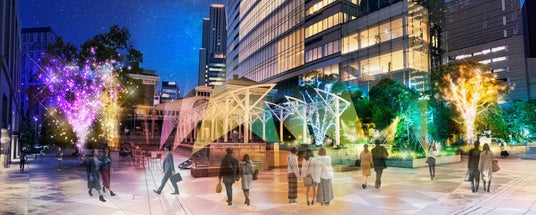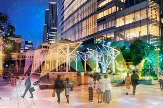 未来と歴史が融合する汐留シオサイト1区B街区のウィンターイルミネーションを施工/日本の鉄道発祥の地を10色の光のうつろいが優しく包み込む