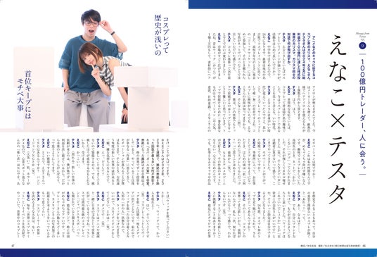 超人気コスプレイヤーのえなこさんと100億円トレーダーのテスタさんが対談! 5ページの対談に加え、えなこさんのグラビア4ページも追加したスペシャルバージョンです。