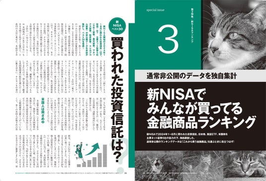 第3特集は、本誌でしか読めないとっておき企画。新NISA開始の2024年1月から8月に「実際に買われた」投資信託と株のランキング特集です。