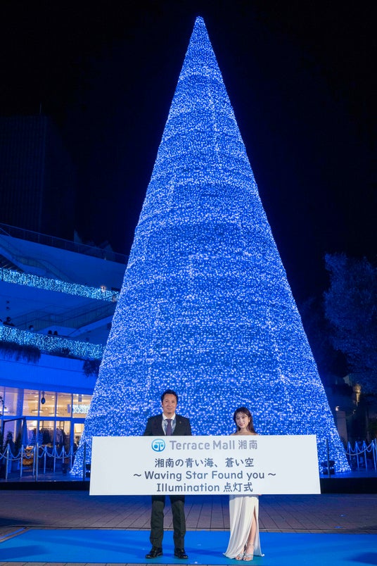JR辻堂駅直結のテラスモール湘南に高さ約20mの巨大ツリーが登場!約30万球の輝きで“湘南ブルー”に彩るイルミネーション「湘南の青い海、蒼い空 ~Waving Star Found you~」