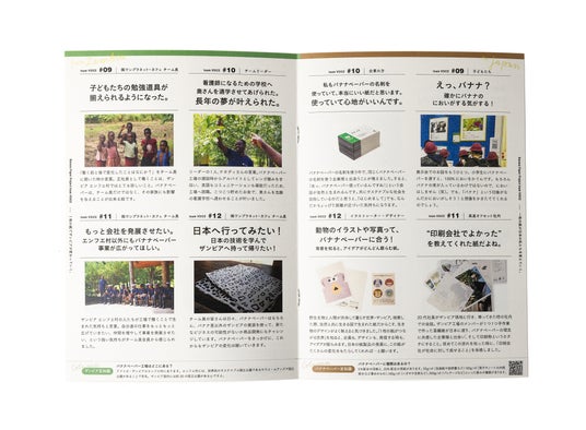 ▲現地でヒアリングした内容に加え、これまで当社がバナナペーパーを取り扱うことで起きた日本国内での変化を収録。個々の声をベースに仕上げており、KAMIKENチーム内では「おことばブック」の愛称で呼ぶことも