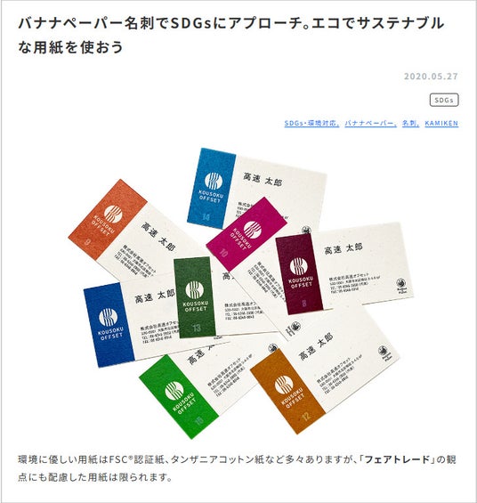株式会社高速オフセット(本社:大阪市西区、代表:島田 智、以下高速オフセット)のKAMIKENチームでは、SDGs17項目すべてに関わる用紙・バナナペーパーの更なる使用拡大を目指し、名刺を無償で作る「877人から始めるバナナ名刺プロジェクト」を企画。まずは877人分の達成に向けて活動を開始します。