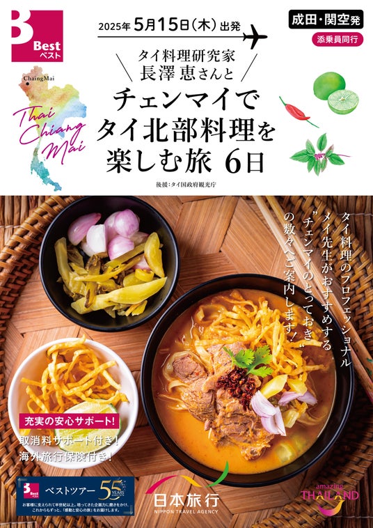 株式会社日本旅行(本社:東京都中央区、代表取締役社長:小谷野悦光)は、タイ国政府観光庁の協力のもと、日本とタイ両国におけるサステナブルツーリズム推進プロジェクトの一環として、タイ料理研究家・長澤恵先生と一緒にタイ北部料理を巡る募集型企画旅行を11月14日(木)14時に発売します。