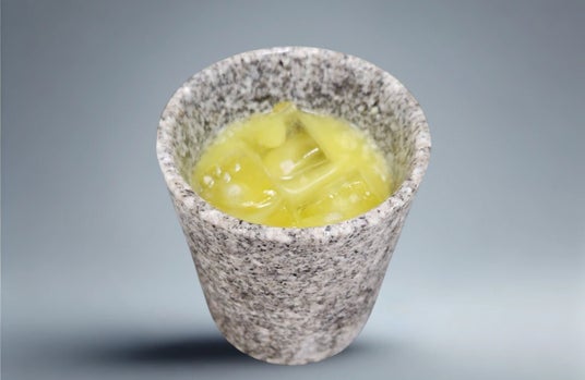 宇寿石から削り出した「石の食器」で、柴田酒造場特製「黄麹甘酒」を使ったデザートを提供。