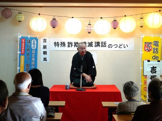 特殊詐欺防止落語「詐欺に喝(勝つ)!」で笑いと学びの一時 吉原朝馬さんが特殊詐欺被害防止を呼びかける
