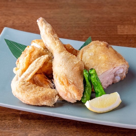 半身揚げ ¥1690 (税込)生後2ヶ月以内のまだ肉が柔らかい雛鳥を半身丸々使用した、ジューシーでボリューミーな一品です!
