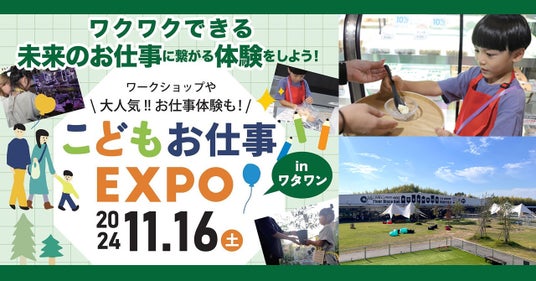 株式会社antiquaが手掛ける滞在型エンターテインメントモール「WHATAWON(ワタワン)」は、グルメ、ショッピング、温浴施設など約50店舗が集まる大型商業施設で、お子様連れやペット同伴のお客様も快適に過ごせる環境を提供しています。オープン以来、ペット連れのお客様から多くの満足の声をいただいております。また、ママと赤ちゃんを応援する定期イベントや、キッズ向けのお仕事体験イベントを開催し、子育て世帯からも高い評価を得ています。そんなワタワンで2024年11月16日(土)、お子さまへ向けたイベント【こどもお仕事EXPO】を開催いたします。このイベントでは、楽しく学びながらワタワンでしかできないお仕事を体験する『ワタワンKIDSおしごと体験』やSDGsを楽しく学べるさまざまなワークショップを実施いたします。ご家族でのご参加をぜひお待ちしております。