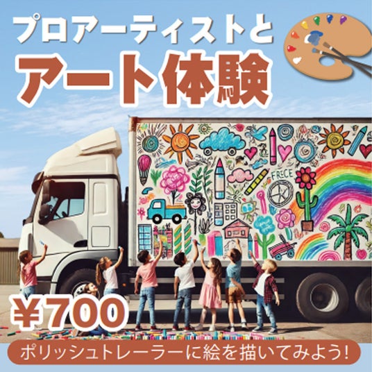 ※ポリッシュトレーラーアート体験は汚れても良い服装またはカッパご持参でお越しください。追加料金¥100でキッズ用カッパの販売もございます。(数に限りがございます)