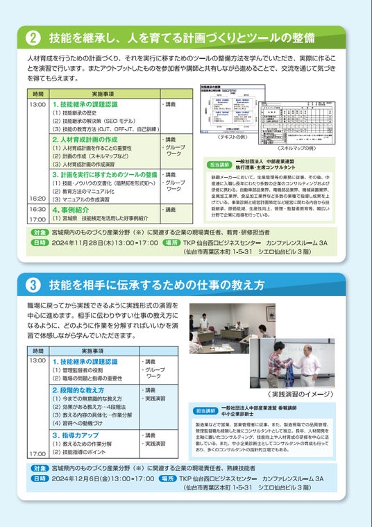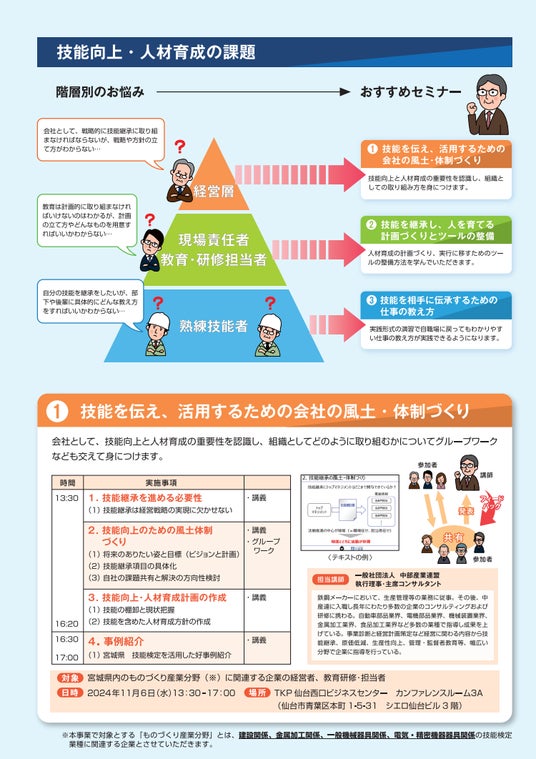 宮城県 ものづくり産業技能向上・人材育成支援セミナー 11/6(水)に第1回目が好評のうちに終了|次回、11/28(木)・12/6(金)に開催