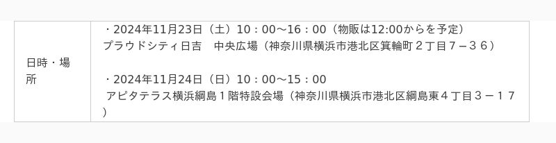 野村不動産株式会社(本社:東京都新宿区/代表取締役社長:松尾大作、以下「野村不動産」)、一般社団法人ACTO日吉(拠点:神奈川県横浜市/代表理事:井上直樹、以下「ACTO日吉」)は、2024年11月23日と11月24日に米沢市主催で「ミニ上杉まつりin日吉」を開催することをお知らせいたします。今後も、地方とエリアマネジメント拠点との新しい接点を創出する取り組みを検討してまいります。