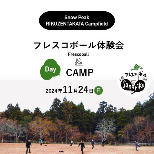 コミュニケーションデザインスポーツ"フレスコボール"の国内での普及活動を行っている一般社団法人日本フレスコボール協会(以下、JFBA、代表理事 窪島剣璽)は、公認地域クラブ「三陸フレスコボールクラブ」が、11月24日(日)岩手県陸前高田市・スノーピーク陸前高田キャンプフィールドにてフレスコボール無料体験会を開催することを発表いたします。