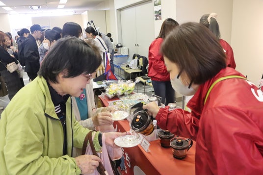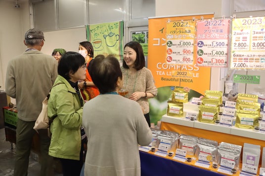 また、紅茶バザールでは、インドやケニア、中国等の海外産紅茶や国産紅茶の試飲ができ、試飲カップを持った多くのかたでにぎわっていた。参加者は「いろんな紅茶が楽しめてうれしい。どの紅茶もおいしい」と話し、自分のお気に入りの紅茶や、紅茶に合うお菓子などを購入していた。
