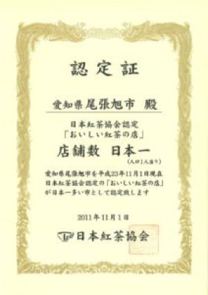日本紅茶協会が認定する「おいしい紅茶の店」の店舗数を日本一にする取り組みです。