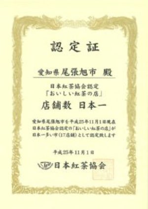 尾張旭市は、2013年11月に愛知県とともに「おいしい紅茶の店実店舗数 日本一」として日本紅茶協会に認定された。おいしい紅茶の店とは日本紅茶協会が認定しているお店で、1998年に制度をスタートし、全国各地から推薦された「おいしい紅茶を楽しめる店」を同協会が審査、認定している。紅茶の提供経験が1年以上、紅茶のメニューが5種類以上、紅茶の説明をできるスタッフがいるといった推薦条件があるとともに、審査は覆面審査で実施される。