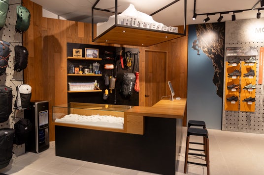 マムートストアのブランド体験スペース「ヒュッテ(Hutte)1862」では、京都のハイキング名所である愛宕山の造形を設置。マムートスタッフが愛宕山や京都周辺のハイキングや登山コースを説明します。「ヒュッテ」の天井は、マッターホルンの造形物となります。また、実際の登山に必要な道具をバックパックにパッキングできる体験やプロダクトケアの方法、マムートのCSRに関する情報などを提供しております。ご来店いただいた方が買い物以外でも楽しめ、また広く京都の魅力を伝える店舗になっております。京都のハイキングルートの3D造形と、「ヒュッテ(Hutte)1862」の愛宕山の造形をお楽しみください。