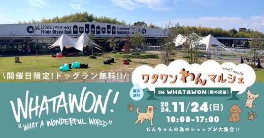 株式会社antiquaが手がける滞在型エンターテインメントモール「WHATAWON(ワタワン)」は、グルメ、ショッピング、温浴施設など約50店舗が集まる大型商業施設で、ペット同伴のお客様も快適に過ごせる環境を提供しています。多くのエリアでペットの同伴が可能で、ショップや特定の犬種が集まる「わんちゃんオフ会」が人気を集めています。そんなワタワンの芝生広場にて、2024年11月24日(日)に人気イベント「ワタワンわんマルシェ」の開催が予定されています。わんちゃんのためのショップが大集合するこのイベントは、毎回多くの来場者が訪れ、愛犬との特別な時間を楽しむことができます。今回のマルシェでも、多彩な商品がラインナップ。オーナー同士の交流や、わんちゃんとの生活をもっと豊かにするアイディアを得られる場となっています。ワタワンならではの楽しいひとときを、愛犬と一緒にお過ごしください!