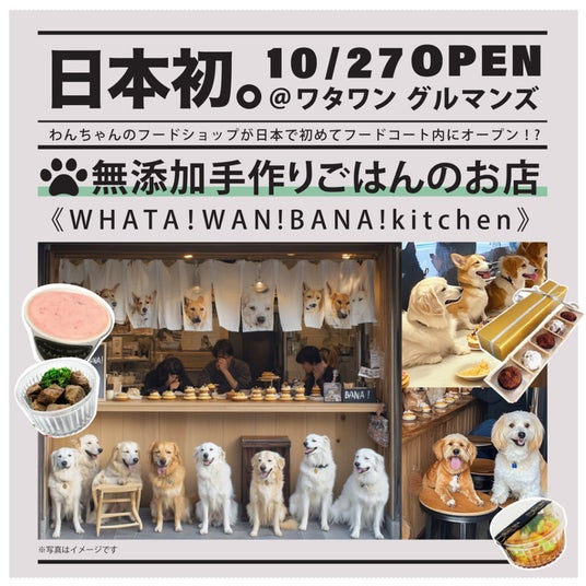 わんちゃんも飼い主さんも快適にワタワンにはわんちゃんが快適に過ごせる工夫が満載!日本で唯一ペットと一緒に入れるフードホール「Gourman's」には2024年10月にわんちゃんのためのフードショップ「WHATA!WAN!BANA!kitchen(ワンバナキッチン)」が新規オープンし連日大賑わいを見せています。さらに新設された大型犬専用ドッグランでは、広さ130坪のスペースで大型犬がのびのびと走り回れる環境が整っています。ワタワンでは、ペットをお連れの方々が安心してゆったりと過ごせるのもポイントです!
