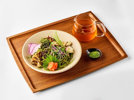 ・西尾抹茶の自家製麺 秋野菜と煮干し香るお茶漬けパスタ(税込1,300円)/JINNAN CAFE