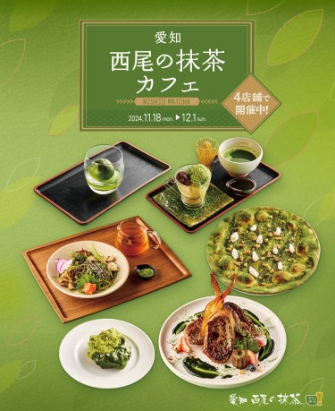 愛知県「西尾の抹茶」の魅力を首都圏にも届けたい-その想いからはじまった2022年のJINNAN CAFE(東京都渋谷区神南)とのコラボ企画を皮切りに、今年で第4弾となる西尾茶協同組合(愛知県西尾市)のカフェプロモーション。2024年9月に先行展開された池袋のてんぼうパークCAFE(東京都豊島区)に続き、11月18日(月)から12月1日(日)までの期間中、「西尾の抹茶」を使った新規コラボメニューを渋谷の人気カフェ4店舗で販売します。全国的にも珍しく抹茶の生産に特化した、有数の生産量を誇る愛知県西尾市の「西尾の抹茶」ならではのメニューをいろいろな料理でお楽しみいただけます。