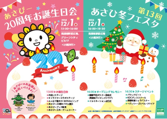 「あさぴー」の記念すべき20周年をお祝いするため、お誕生日会を開催します。