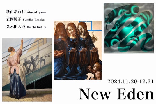 現代アートのギャラリーを運営する株式会社タグボート(本社:東京都中央区、以下タグボート)は、 2024年11月29日(金)~12月21日(土)に、東京‧日本橋富沢町にあるtagboatにて現代アーティスト・秋山あいれ、岩岡純子、久木田大地による3人展 「New Eden」を開催いたします。
