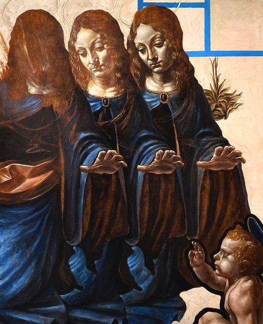 久木田大地は、西洋の古典絵画を引用しながら、鑑賞者に視覚的な驚きを提供する作品を手がけています。画面構成には繰り返しや変容の手法を用い、鑑賞体験に“ずれ”を生じさせることで、古典と現代の間に新たな価値観を創出します。