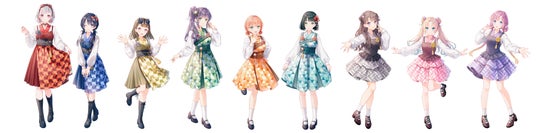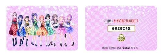 石川県の伝統工芸(加賀ゆびぬき、加賀てまり、金沢箔)をイメージした衣装に身を包んだ、華麗なメンバーのドレスの描き下ろしイラストを展開。