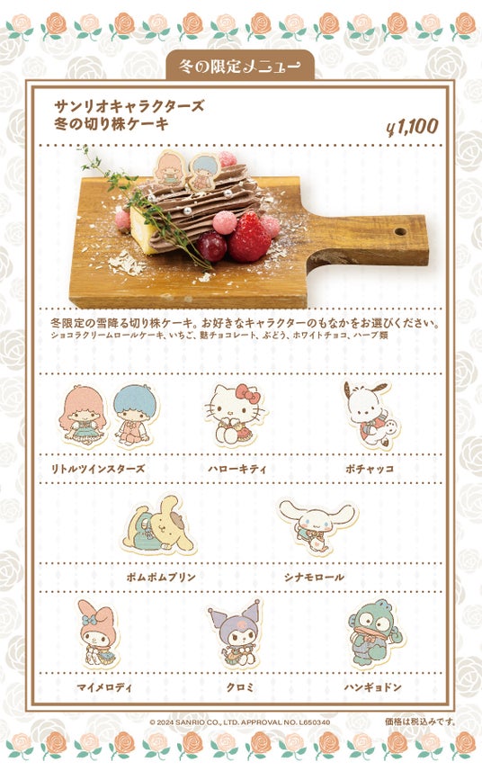 2025年2月末までの期間限定。サンリオキャラクターズ ガーデンカフェでとっておきの冬をお過ごしください。
