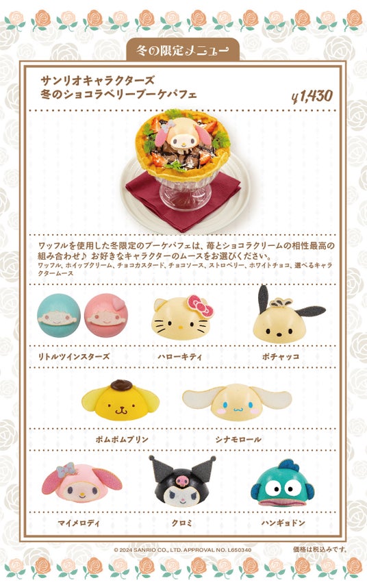 東京上野のサンリオキャラクターズ ガーデンカフェでは、2024年11月15日より冬季限定メニューの提供を開始いたします。2025年2月末までの限定メニューです。