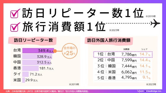 台湾からの訪日観光需要が急速に回復し、消費額は過去最高の7,786億円を記録し、今後も台湾からの観光客の増加が見込まれます。