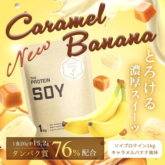 頑張る日々に幸せの一杯を!!THE PROTEIN(通称:ザプロ)〈ソイプロテインシリーズ〉から心も満たすご褒美フレーバー〈キャラメルバナナ風味〉が期間限定で登場!