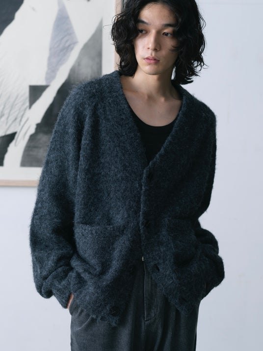 NAME:SHAGGY KNIT MIX CARDIGAN