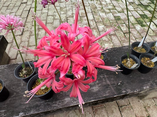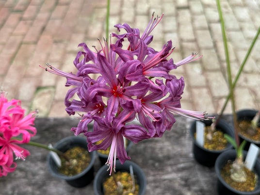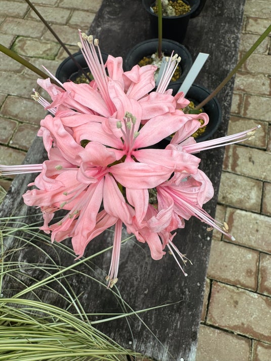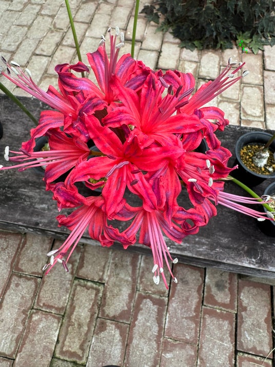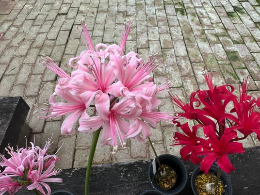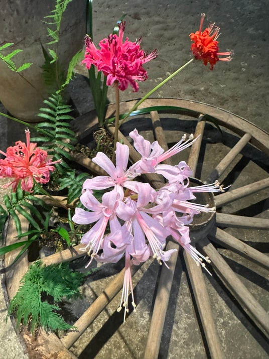 晩秋の宝石のような花ダイヤモンドリリー(ネリネ)は、南アフリカ原産のヒガンバナ科ネリネ属の球根植物です。陽の光を受けると花弁がダイヤモンドダストのようにキラキラと輝くことから、ダイヤモンドリリーとも呼ばれています。花言葉は「また会う日を楽しみに」「忍耐」「箱入り娘」。「ネリネ」はギリシア神話に登場する美しい女神・ネーレーイスに由来してつけられた名前で、ネーレーイスは美しさのあまり⽗神から大事にされすぎて、水底に閉じ込められて育った女神たちで、全部で50~100人もいたのだそうです。