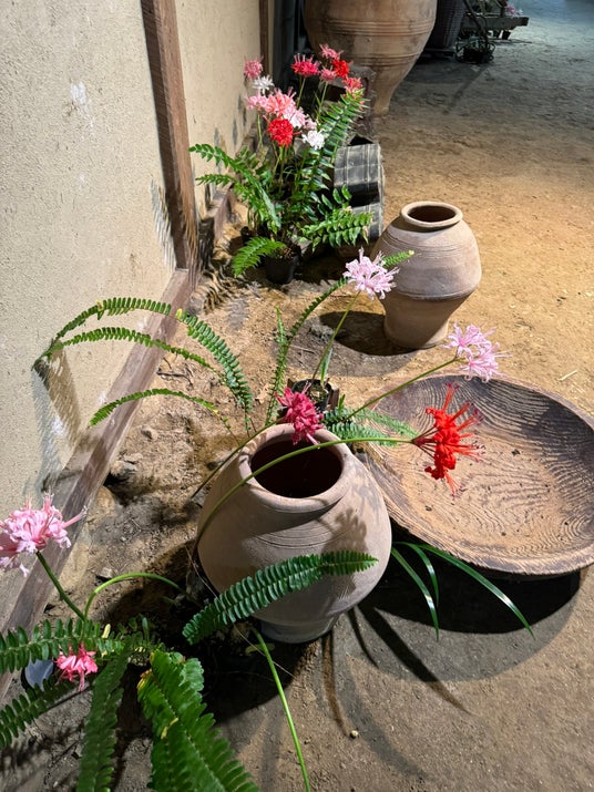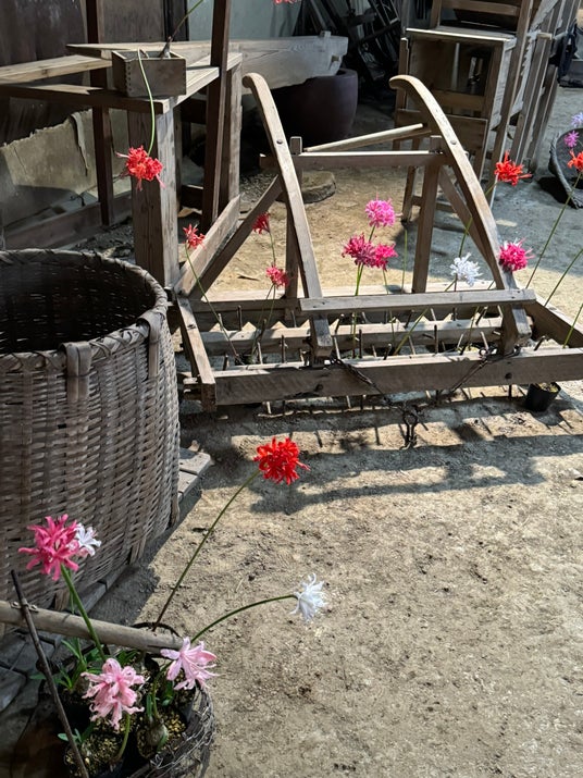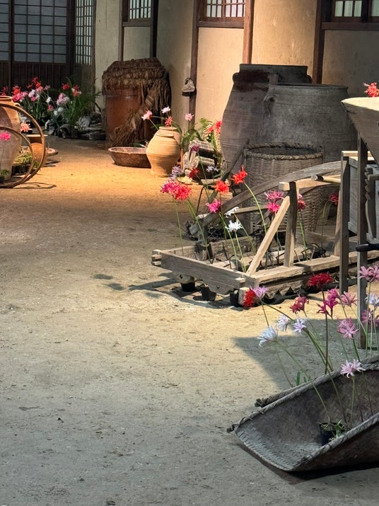 庄屋屋敷の農機具部屋とダイヤモンドリリーのコラボの不思議な世界も楽しんでください、