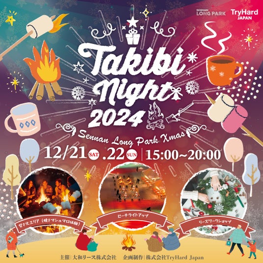 大和リース株式会社(大阪市中央区)と株式会社TryHard Japan(大阪市中央区)は、2024年12月21日(土)・22日(日)にSENNAN LONG PARK(泉南りんくう公園、所在地:大阪府泉南市)内、サザンストリートにて、クリスマスイベントSENNAN LONG PARK Xmas「TAKIBI Night 2024」を開催いたします。