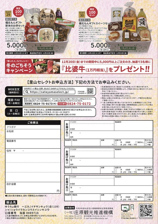 「食材の宝庫・庄原」の逸品を直送するオンラインショップが冬ギフトの販売を11月14日(木)から開始しました。