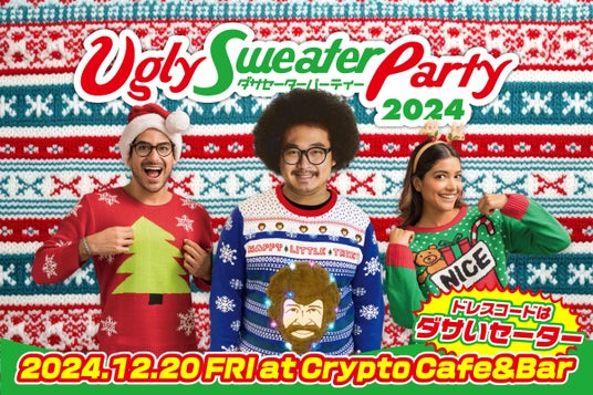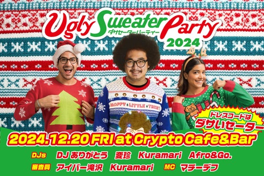 泡にまみれる体験型イベント「泡パ」や、120万枚の花びらに埋もれるバー「SAKURA CHILL BAR by 佐賀」など、数々の話題のイベントを手がけるクリエイター「アフロマンス」率いるクリエイティブカンパニー「Afro&Co.」は、参加者全員が「ダサセーター」を着て楽しむイベント「ダサセーターパーティー2024 -Ugly Sweater Party-」を、2024年12月20日(金) National Ugly Christmas Sweater Day(国民的ダサセーターの日)に、恵比寿のCrypto Cafe&Barにて開催いたします。