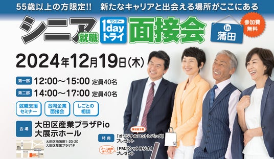 企業とシニア世代のマッチングを推進、就職を目指すシニア世代のための2024年度イベント第3弾「シニア就職1dayトライ面接会 in 蒲田」を12月19日(木)に開催