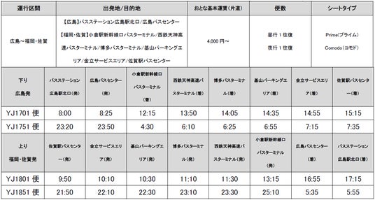 は広島バスセンターと小倉駅(昼行便)および佐賀駅を結ぶ初の路線となり、広島と九州を結ぶ移動