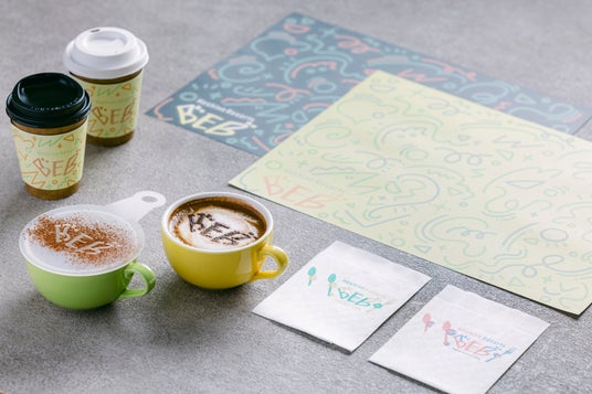 ※トレーペーパーとカップスリーブは同デザインで色違い。トレーペーパーは夜Verも考案。