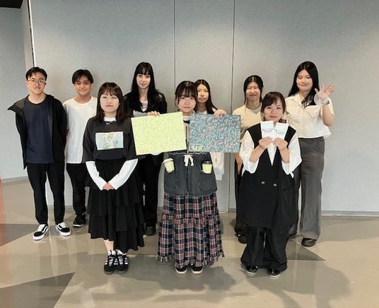 ※プロジェクトに参加した、東京モード学園の学生9名。コンペティションの結果、デザインが採用された学生は3名