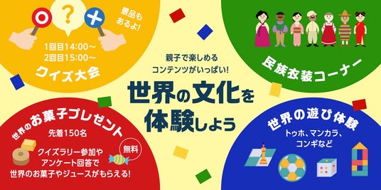 イベントでは、桑名名物の「安永餅」ほか桑名市に多く在住する外国人の母国のお菓子を提供したり、民族衣装の展示、世界の遊び体験、世界の国旗ぬりえコーナー、多文化共生を目的としたクイズ大会などが実施される。参加は無料。