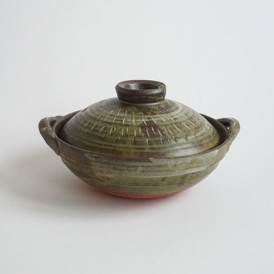 緑がかった独特な色みの土鍋。使いやすい8号サイズです。