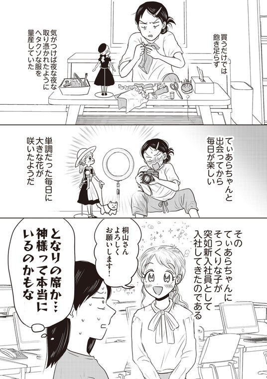 話しかけられると緊張して引きつった表情になり、うまく社内でコミュニケーションが取れないドールオタクの桐山(きりやま)。ある日、新入社員として入ってきた南(みなみ)が自分の溺愛するドールと瓜二つであることに衝撃を受ける。次第に彼女へ心を開いていく桐山だったが、自分の隠していた趣味を知られてしまい――。