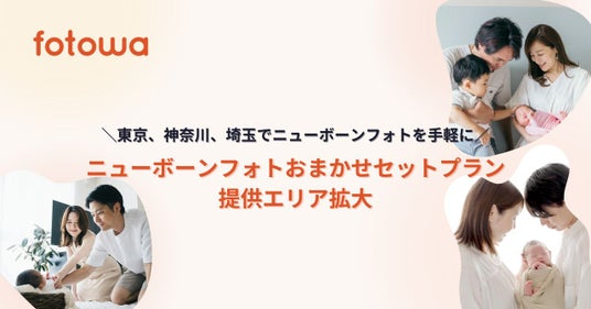 ピクスタ株式会社(東京都渋谷区 代表取締役社長:古俣大介、東証グロース:3416)が運営する出張撮影プラットフォーム「fotowa(フォトワ)」は、これまで東京23区で提供していた「ニューボーンフォトおまかせセットプラン」を、東京都全域(島しょ地域を除く)と神奈川県、埼玉県で拡大いたします。これにより、より多くの地域のご家族が手軽にニューボーンフォトを撮影できるようになりました。