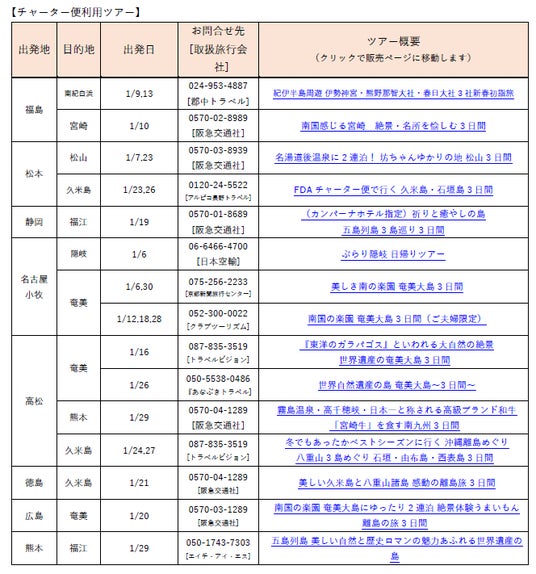 現在募集中の、FDAチャーター便を利用した旅行ツアーのご案内です。