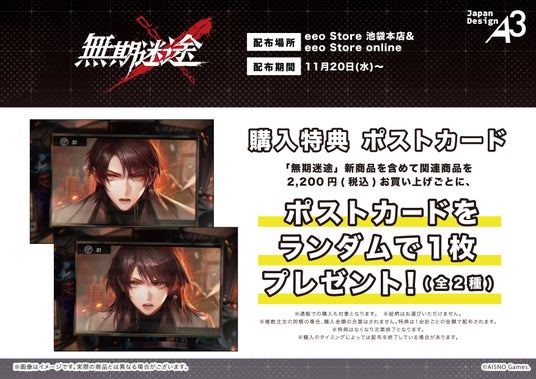 『無期迷途』新商品を含めて関連商品を1会計2,200円(税込)お買い上げごとに、購入特典としてポストカード(全2種)をランダムで1枚プレゼント。