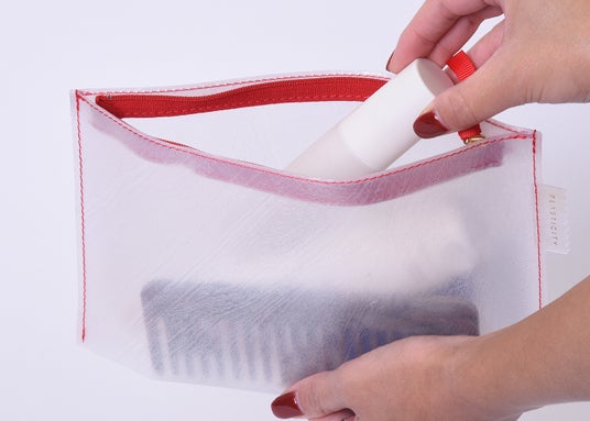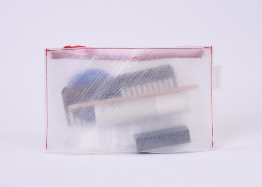 GLASS RAIN素材の長方形ケースはクッキーがぴったりと収まるサイズに。シンプルな外観ながらカラーファスナーでアクセントを加えました。 底マチを入れることで、収納力もあるケースが完成しました。 クッキーを食べ終えたあとも日常生活で使える小物入れとしてご使用いただけます。