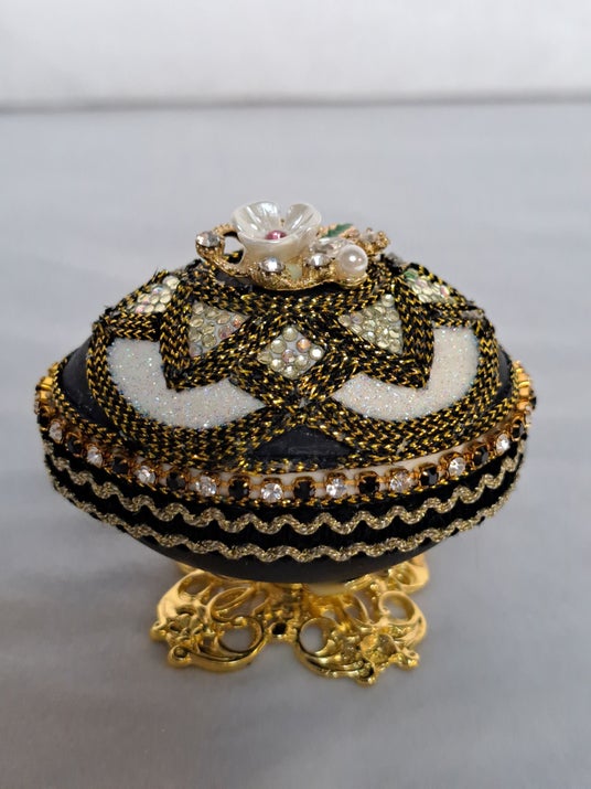 「宝石箱 エレガント ブラック」(素材:チキン、ブレード、スワロフスキー、約幅7×奥行5×高さ7cm) 9,350円