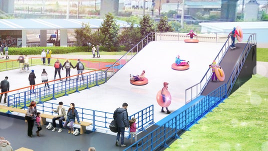 日本初!斜面に作られたアイスリンクをスノーチューブに乗って滑降!